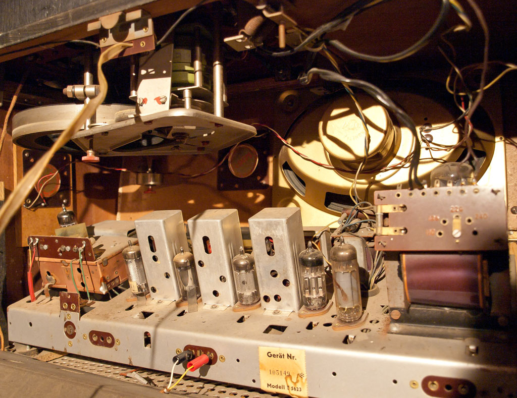 Diesmal gibt es ganz was besonderes für mich: ein Tefifon T 541! Etwas Besonderes deshalb, weil bei der Hochzeitsfeier meiner Eltern 1961 so ein Schallbandspieler zur Unterhaltung spielte. Irgendwie hatte wohl jemand aus der Nachbarschaft so einen Player. Und nun bekam ich die Gelegenheit von Josef, ein befreundeter Sammler, so ein Tefifon-Radio günstig zu erwerben – da habe ich mich riesig gefreut und natürlich diese Gelegenheit sogleich beim Schopfe gepackt!